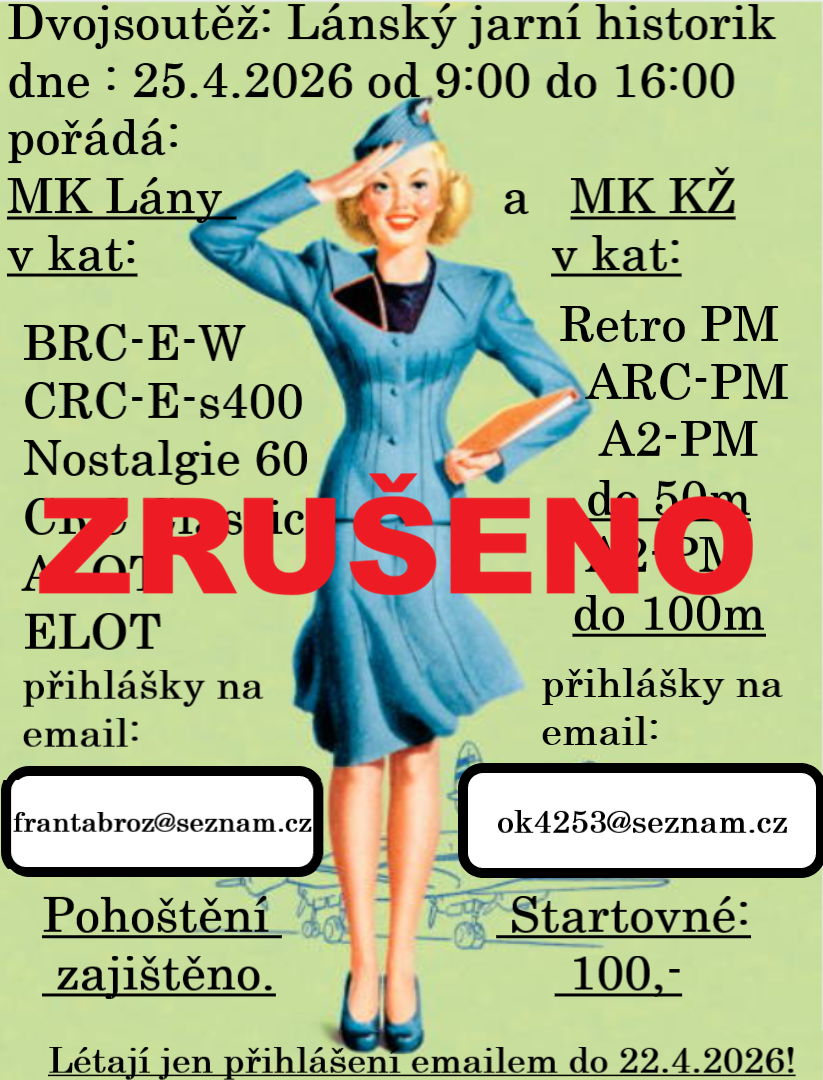 Vážení kolegové a kamarádi, kluby MK Lány a LMK Kamenné Žehrovice vás zvou na jarní dvojsoutěž do Lán. Akce se koná 25.4.2026. Hlavními organizátory jsou František Brož a Roman Fousek. …