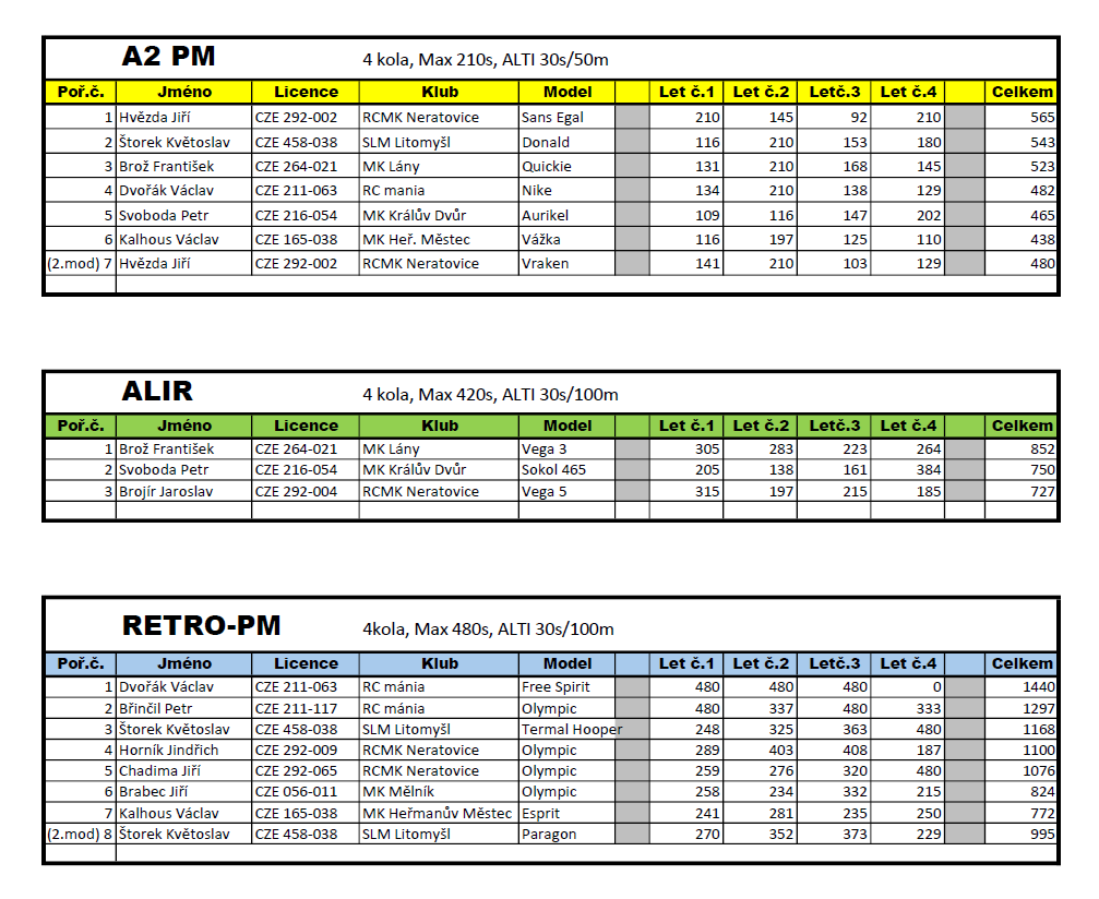 Vážení kolegové, máme tady výsledky ze soutěže Neratovický historik, který se odlétal 19.4.2026 na letišti Neratovického RC klubu.