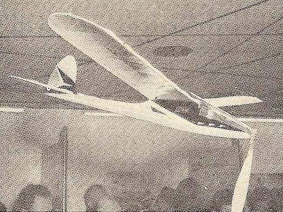V roce 1950 dělal Fred pokusy s malým asi metrovým modelem, kdy nevýkonný elektromotor poháněl model při klouzavém letu. Model do výšky vynesl raketový motorek Jetex. Klouzavý let byl elektromotorem prodloužen jen o několik sekund.