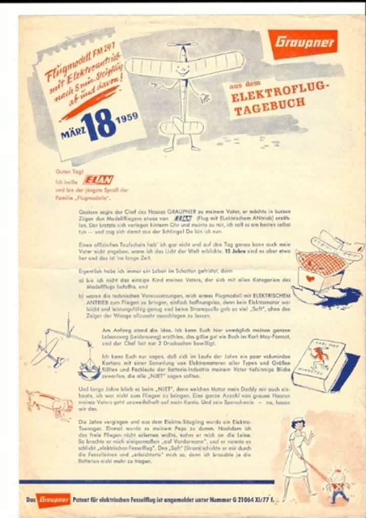 Důležitá byla reklama. Takže pro propagaci se využívaly různé letáky a podobně. Jedním z nich byl Eletroflug Tagebuch, tedy deníček elektrického letu. Byl podepsán Fredem Militkym. Což vzbuzovalo určitý pocit autenticity…
